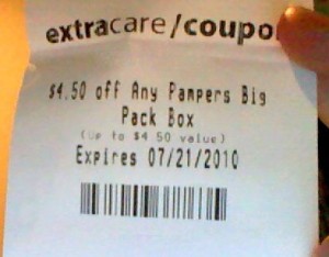 I’ve heard reports that lots of people are receiving $4.50 off any Pampers Big Pack Box coupons upon scanning their card at the coupon center! If you receive this coupon, you can get a great deal…