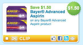 Today, Target released a mobile coupon for $2/1 Bayer Advanced Aspirin! You can stack this coupon with a new $1.50/1 Bayer Advanced Aspirin product printable coupon to get it FREE at Target! This list has expired. See my coupon matchups page for current lists. Thanks, Totally Target!